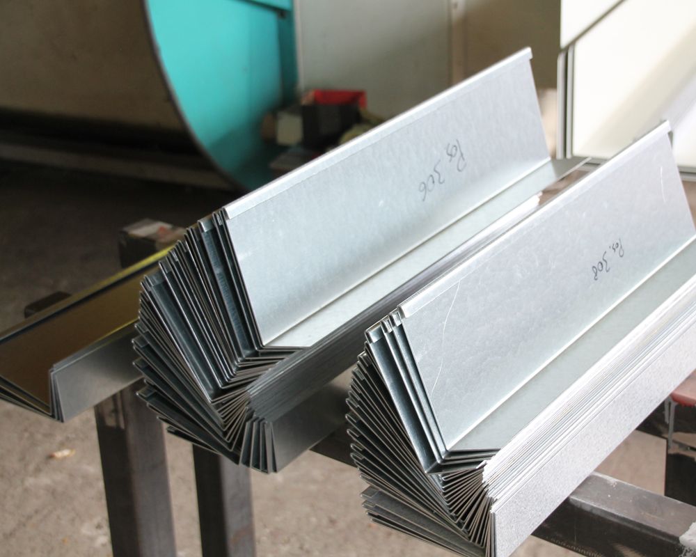 Auf unserer Schwenkbiege- und Abkantpresse können wir Dünnbleche bis 3.000 mm Länge und 4 mm Blechstärke bearbeiten. Das programmgesteuerte Biegeverfahren sorgt für präzise Biegewinkel bei Einzel und Serienproduktionen. In unserem Lager halten wir die gängigen Bleche in schwarz, Zink, Loch, Edelstahl, Alu und Stahlblech, verzinkt und beschichtet, in den Standardfarben in den Maßen 1.250 x 3.000 mm vor. Da die Kantteile für den Fassadenbereich oftmals vor Ort ausgemessen werden, ist eine kurzfristige Bearbeitung dieser Aufträge für uns selbstverständlich.